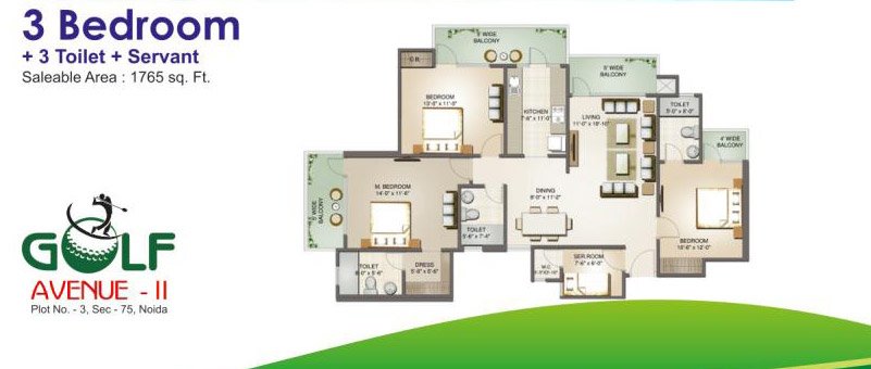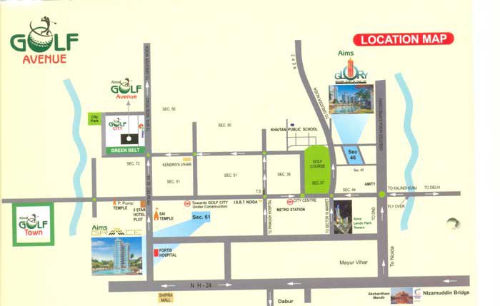 spectacular view of the green course from your patio or balcony. This opportunity is awaiting you at our residencies called Aims Golf Avenue. Those upscale two, three & four bedroom homes offer a maintenance-free life-style and all the appointments found in a lavish home. 9 feet ceilings, hardwood & tile flooring, modular kitchen With granite countertops & tile backsplashes which you can readily further enhance to the gourmet kitchen all awaits you. These apartments are part of 150 acres plus one of its own kind integrated green concept township namely Aims Golf City which has all the standard modern facilities like landscaped gardens, playgrounds, schools, hospitals, commercial complexes & office spaces, high street retail, human & technological surveillance, etc. The main road in front of the project straightaway leads to Noida-G Noida Expressway & Taj Expressway to Agra. Besides, eminent schools & universities like DPS & Amity, and sans pareil hospitals like Fortis & lT hubs are all in close vicinity.